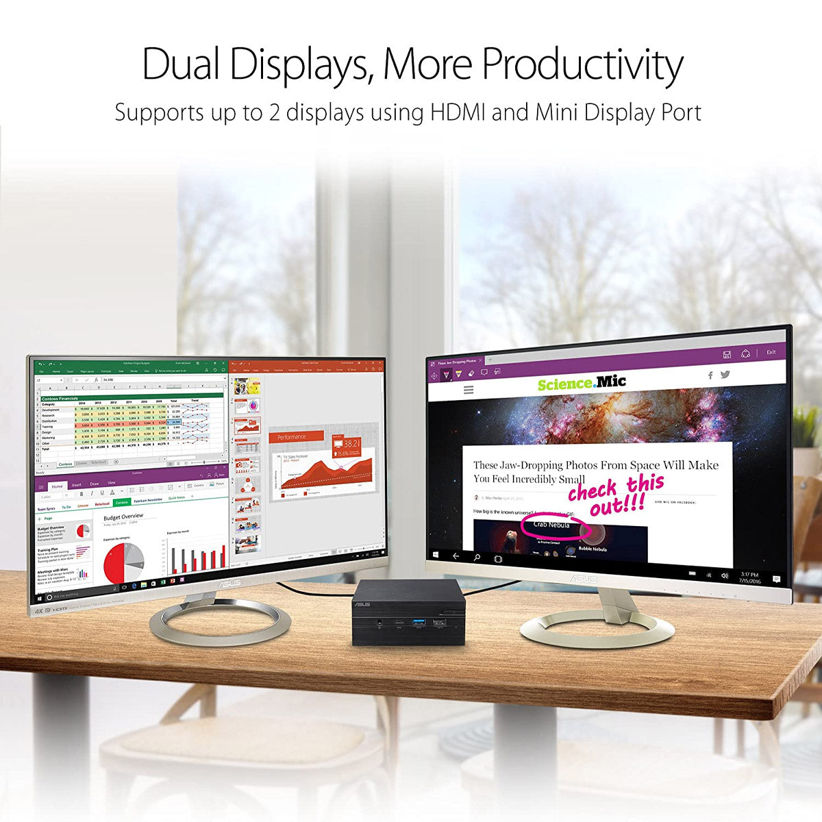 ASUS Mini PC PN60 comes equipped with integrated Intel UHD Graphics, so you can enjoy watching video and viewing images in stunning 4K UHD resolution. Support for dual displays lets you extend your workspace across multiple monitors for more efficient and comfortable productivity experiences.