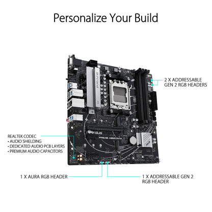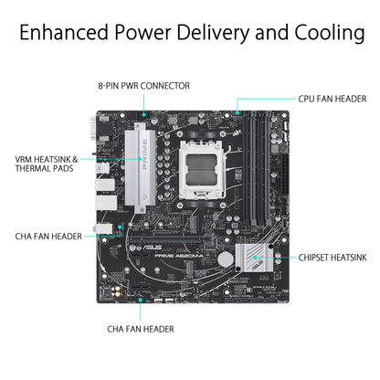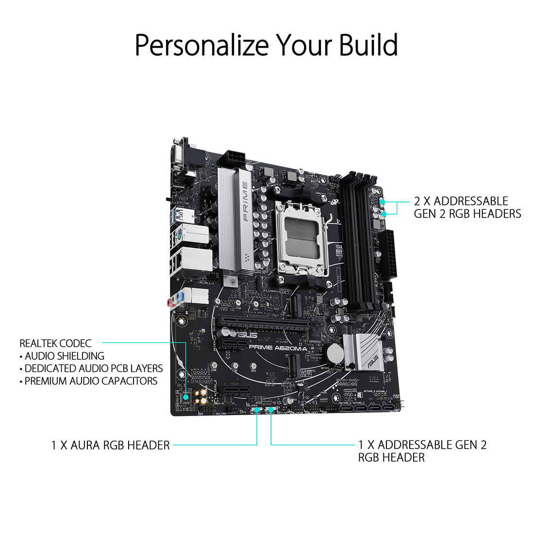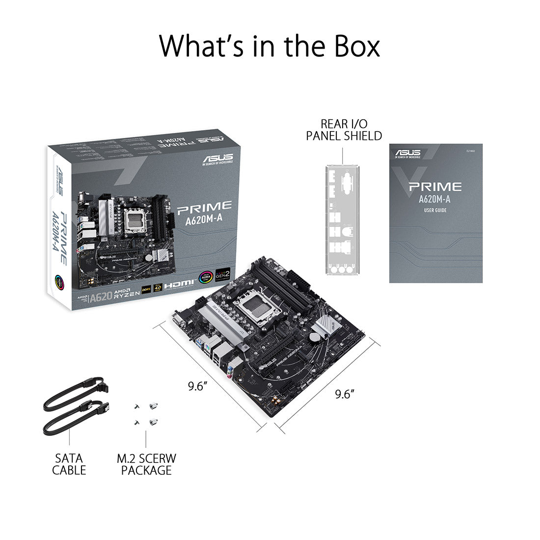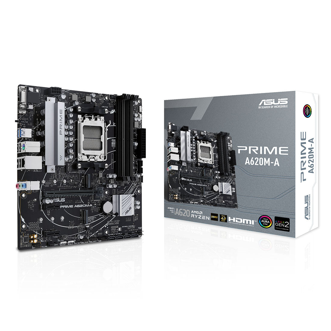 - ASUS Prime A620M-A motherboard is designed to support latest AMD Socket AM5 for Ryzen 7000 series Processors.