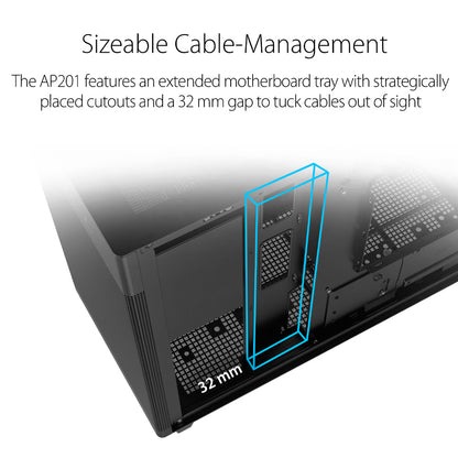 With support for 280 and 360mm radiators and up to 6 fans, the AP201 is primed to deal with the thermal onslaught of high-performance hardware.