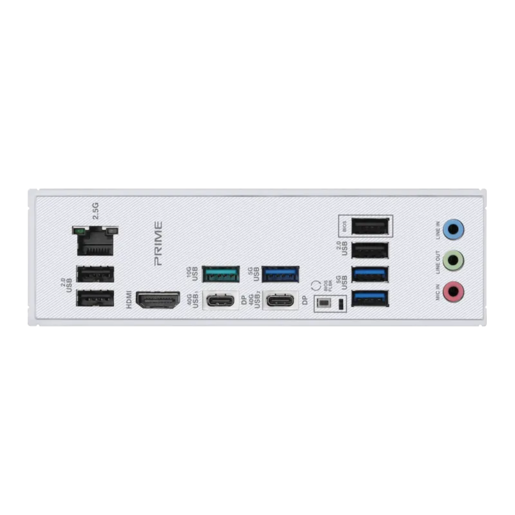 2 x USB4ÂŽÂ (40Gbps) ports (2 x USB Type-CÂŽ) 1 x USB 10Gbps port (1 x Type-A) 3 x USB 5Gbps ports (3 x Type-A) 4 x USB 2.0 ports (4 x Type-A) 1 x HDMIâ˘Â port 1 x Realtek 2.5Gb Ethernet port 3 x Audio jacks 1 x BIOS FlashBackâ˘Â button |