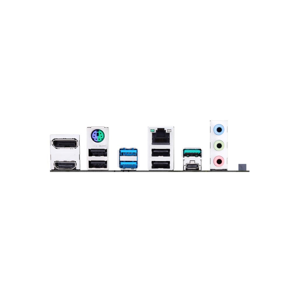 | Back Panel I/O Ports | 1 x USB 3.2 Gen 2x2 port (1 x USB Type-C) 1 x USB 3.2 Gen 2 ports (1 x Type-A) 2 x USB 3.2 Gen 1 ports (2 x Type-A) 4 x USB 2.0 ports (4 x Type-A) 1 x DisplayPort 1 x HDMI port 1 x Vertical M.2 slot (Key E) 1 x Realtek 2.5Gb Ethernet port 3 x Audio jacks 1 x PS/2 Keyboard/Mouse combo port |