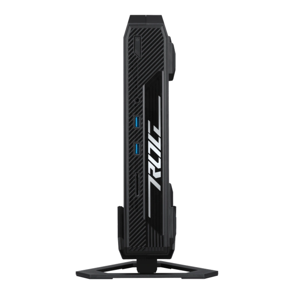 | Design | Compact 2.5L chassis with vertical stand, ARGB lighting, ROG Armoury Crate support |