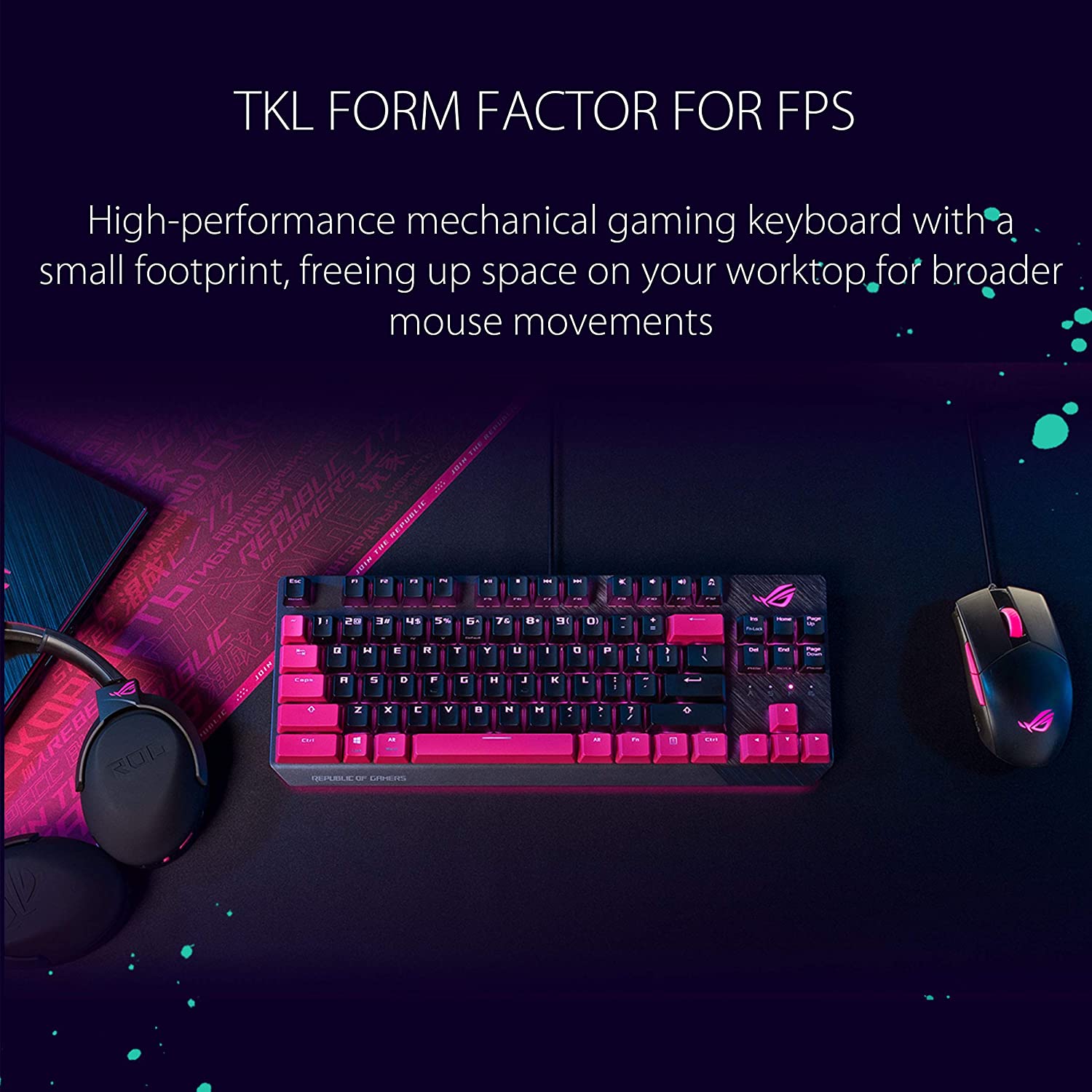 - ROG Strix Scope TKL Electro Punk is a next generation wired keyboard designed for gamers who demand both the high performance capabilities of mechanical switches and engineered to deliver advanced performance with just the right feature set.