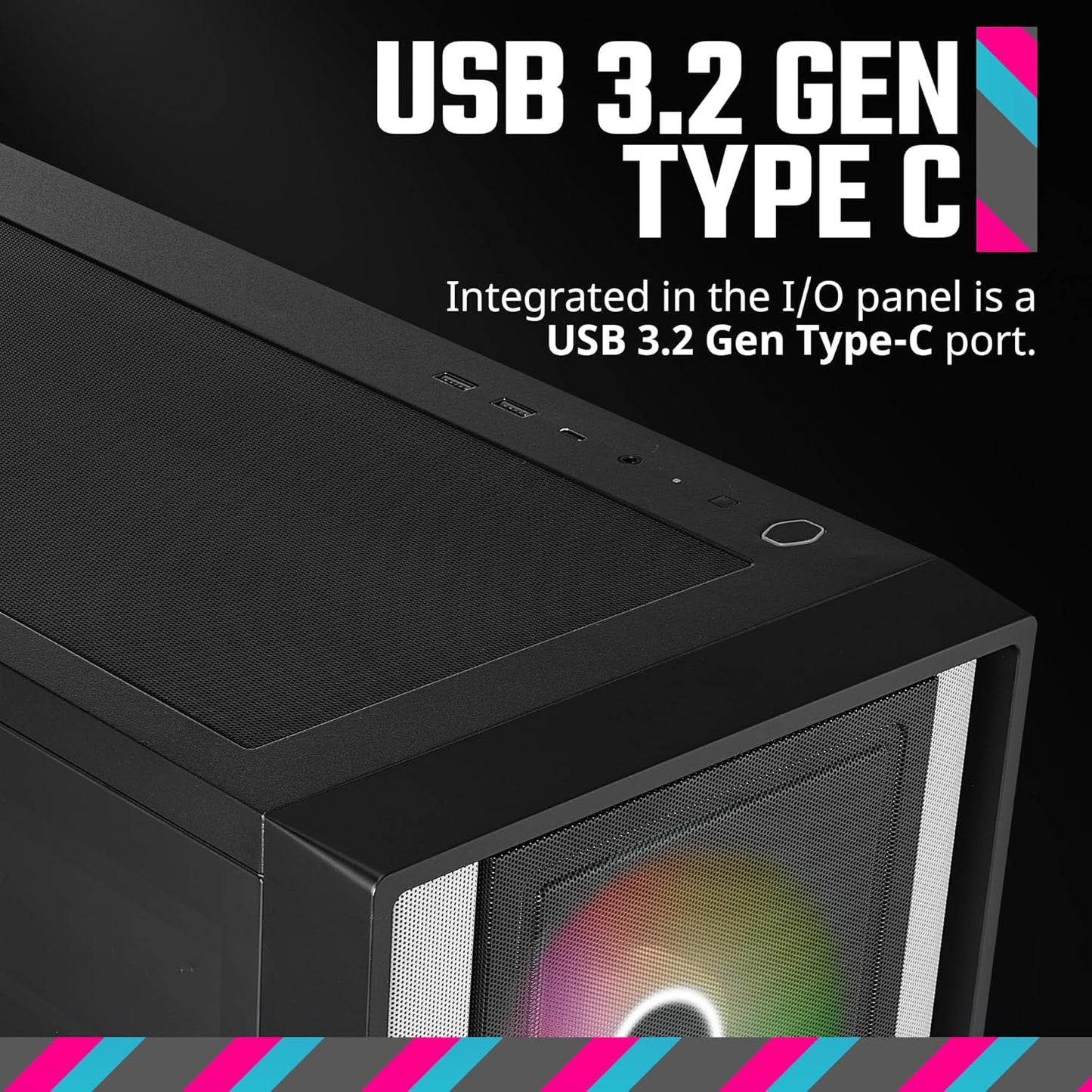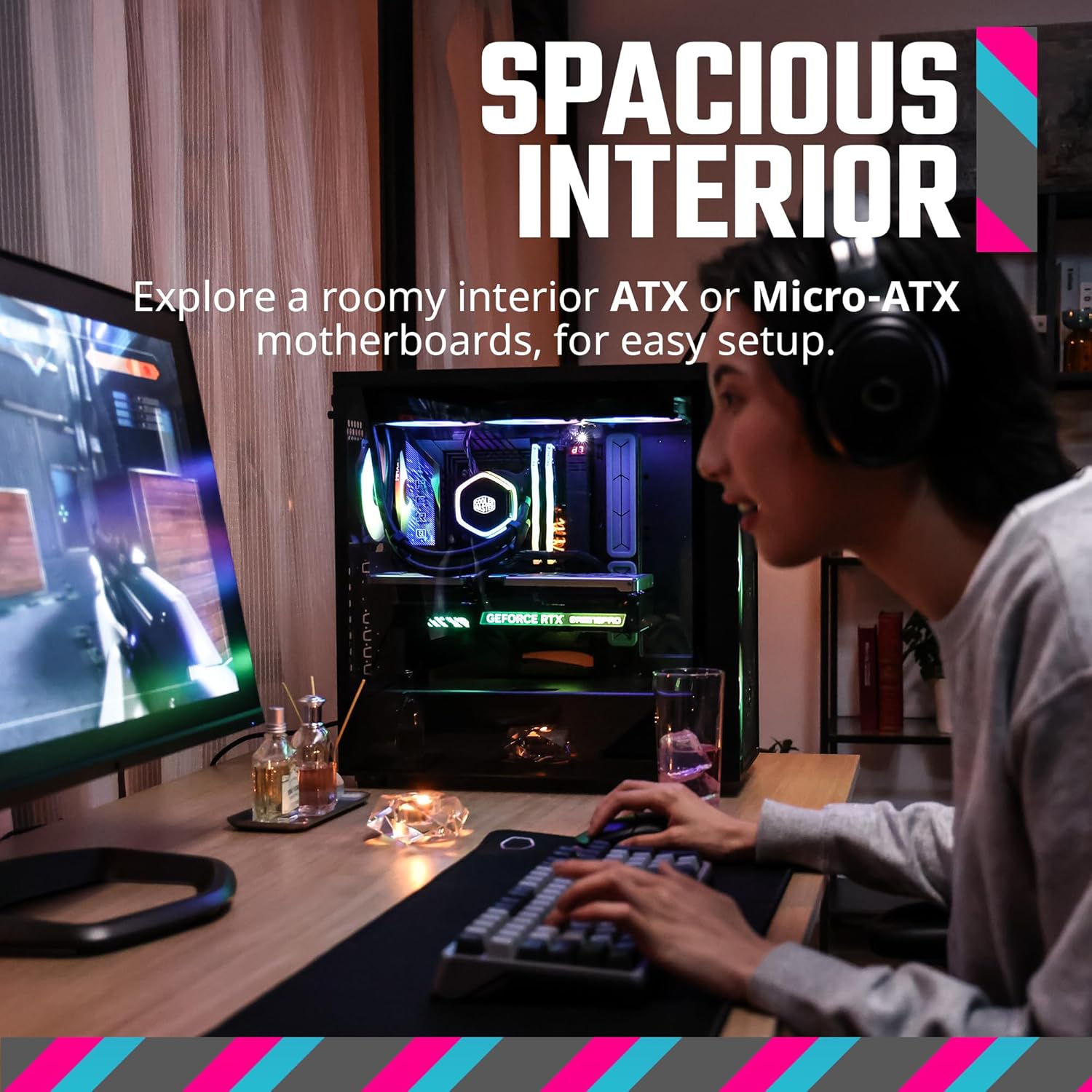 Cooler Master MasterBox 600 ARGB E-ATX Tempered Glass Side Panel Mid Tower Gaming Cabinet - Black