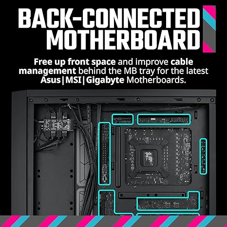 Support back-connected motherboard to frees up space in the front of the case and providing improved cable management space up to 33~35mm behind MB tray.