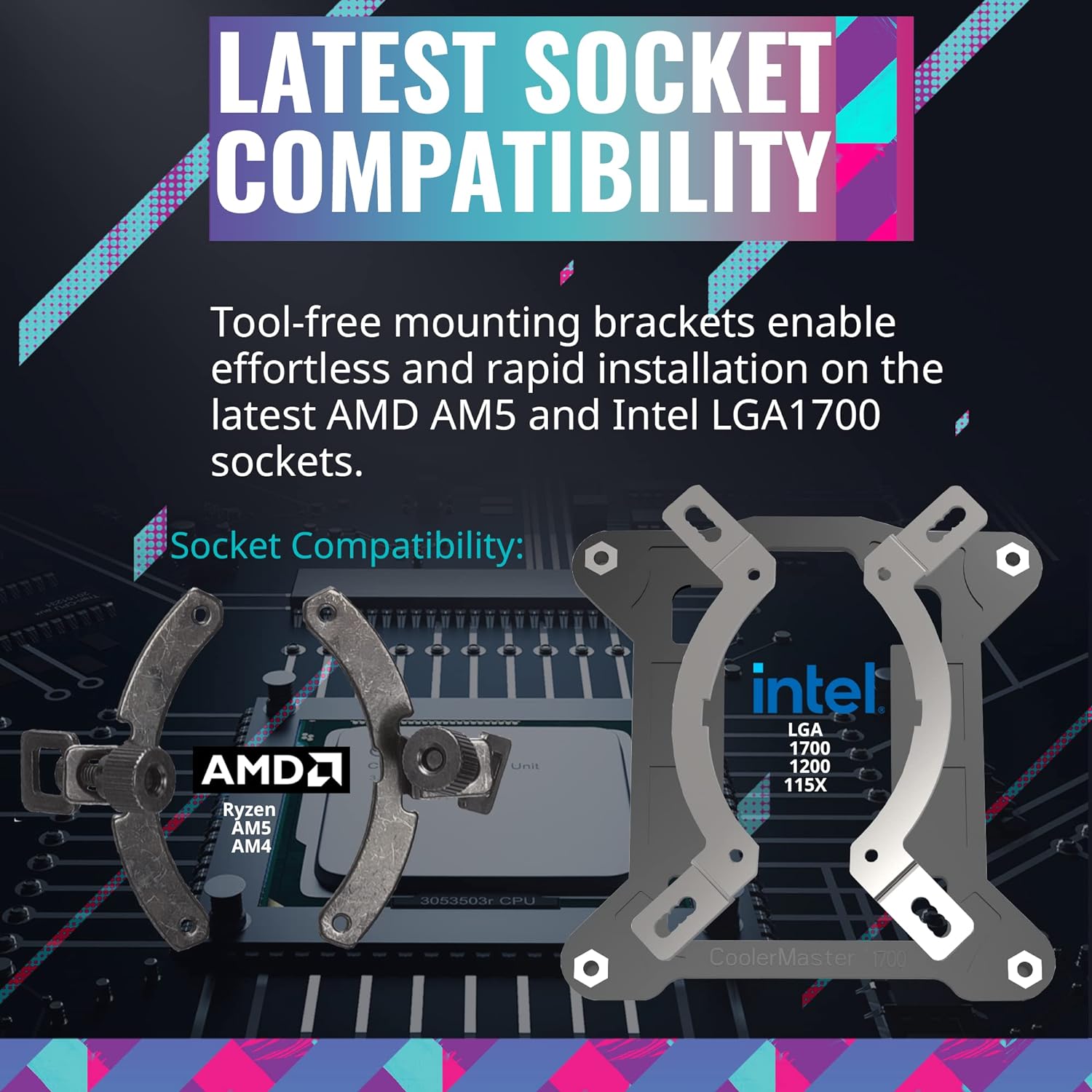 Intel LGA 1700 / 1200 / 1151 / 1150 / 1155 / 1156 socket AMD AM5 / AM4 / AM3+ / AM3 / AM2+ / AM2 / FM2+ / FM2 / FM1 socket