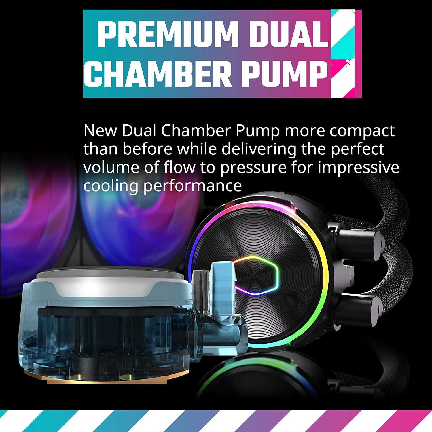 Dual loop pump ARGB with independent lighting customization showcases your visual creativity without sacrificing cooling capability.