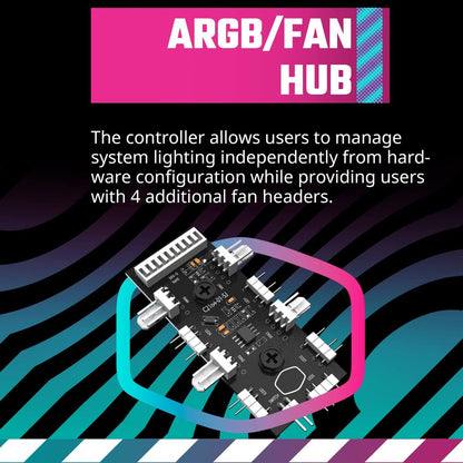 The included controller allows users to manage systems lighting independently from the hardware configuration and provides the user with 4 additional fan headers in case of need.