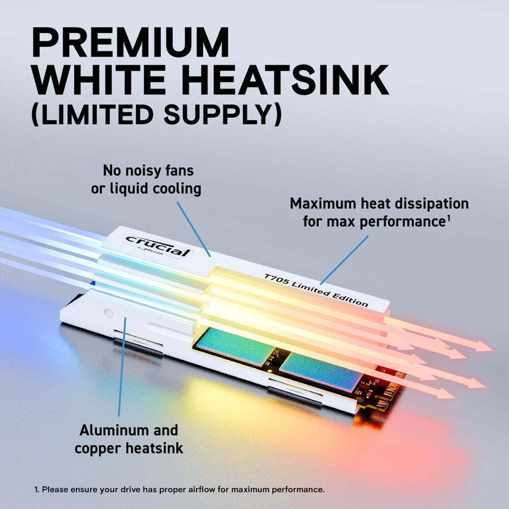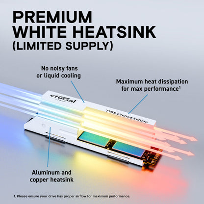 Crucial T705 2TB PCIe 5.0 NVMe M.2 2280 SSD with Heatsink - Limited Edition White