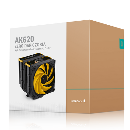 The AK620 ZERO DARK ZORIA is a higher-end dual-tower air cooler that builds upon the well-known AK620 design. This edition of the AK620 is a special model that was developed in collaboration with Anshar Studios and is based on their Zoria: Age of Shattering role-playing game.
