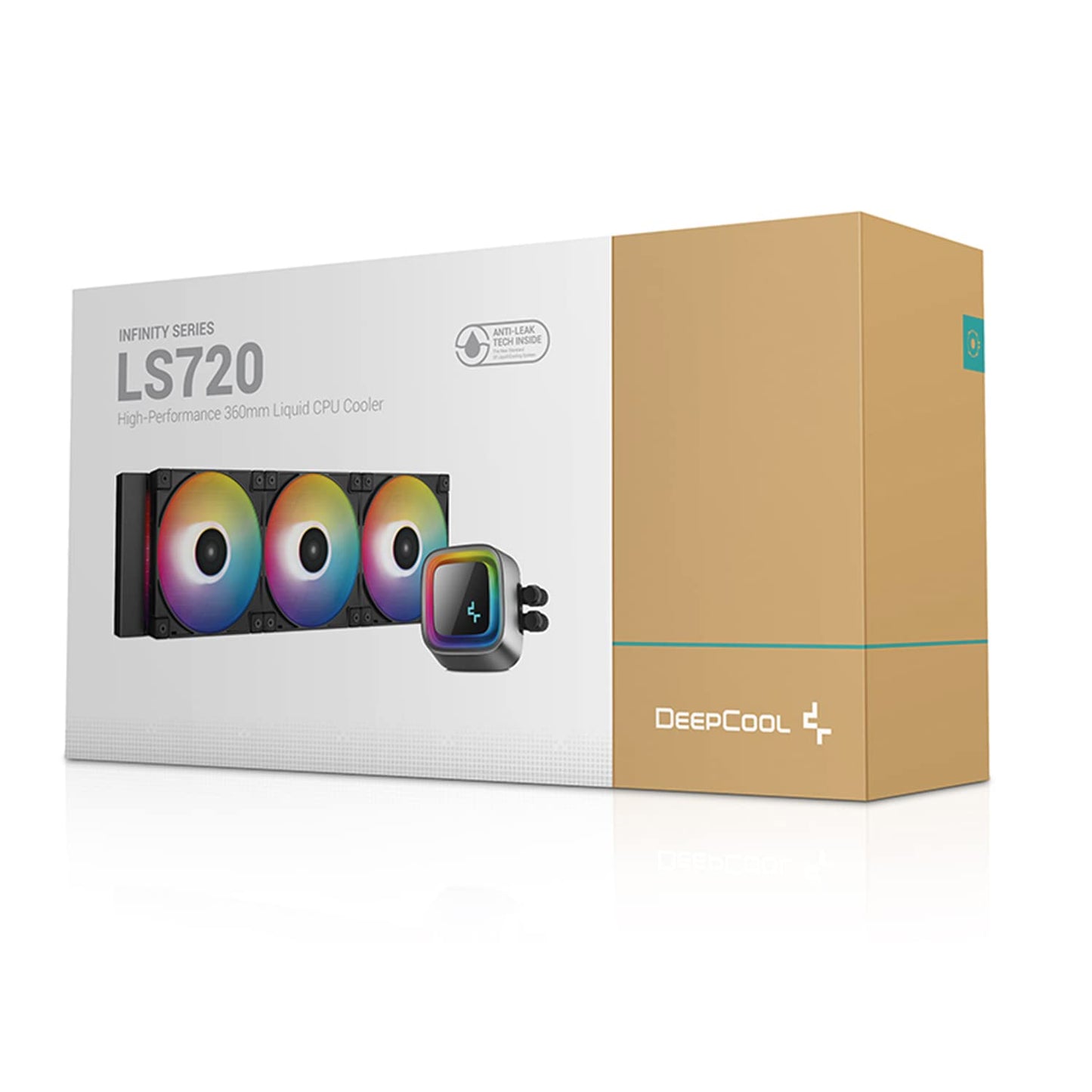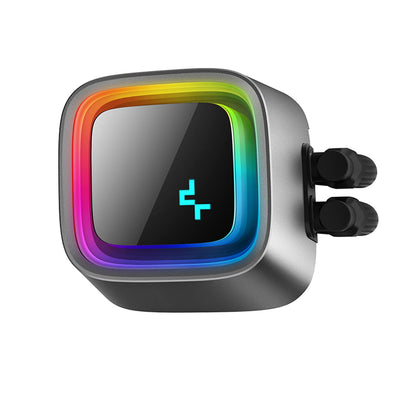 The DeepCool LS720 premium liquid CPU cooler maximizes cooling performance and low-noise efficiency with a 360mm radiator, three FC120 A-RGB PWM fans, and an infinity mirror cap design.