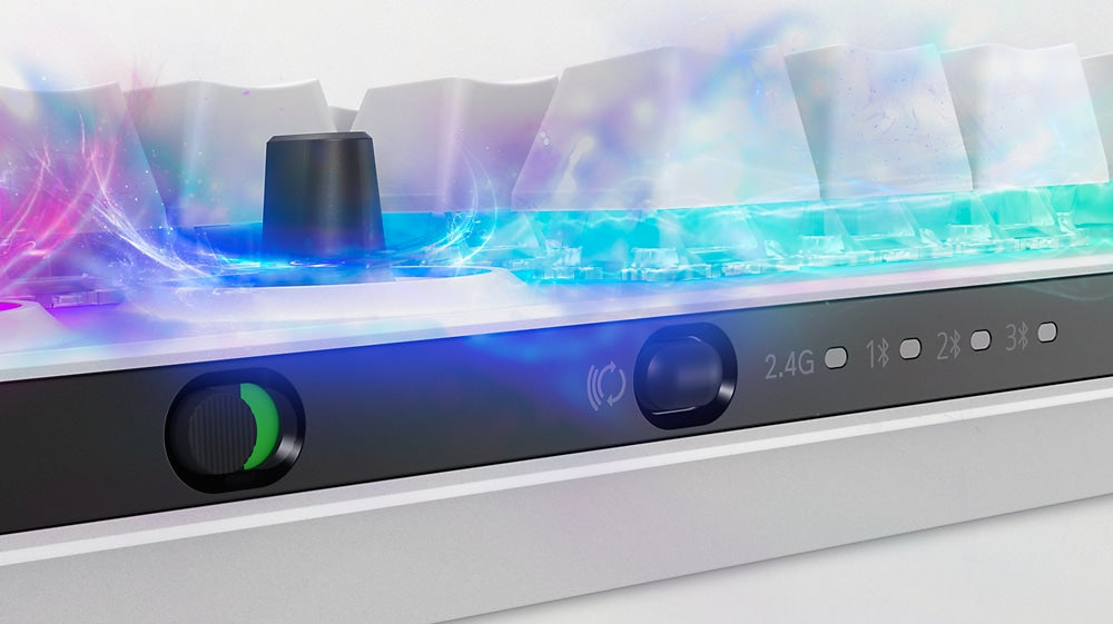 Bluetooth 5.1: Connect up to three compatible devices via Bluetooth 5.1. Select the active paired device using the connectivity toggle button on the back of the keyboard.