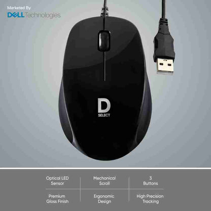 Dell Exclusive D SELECT DS111 1200DPI USB Type A Optical Wired Mouse - Black