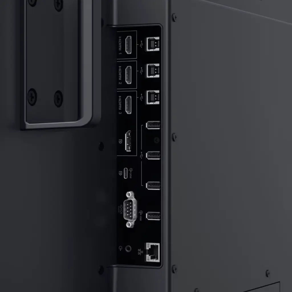 | Ports | 3× HDMI, DisplayPort, USB-C, 8× USB, LAN, RS-232 |