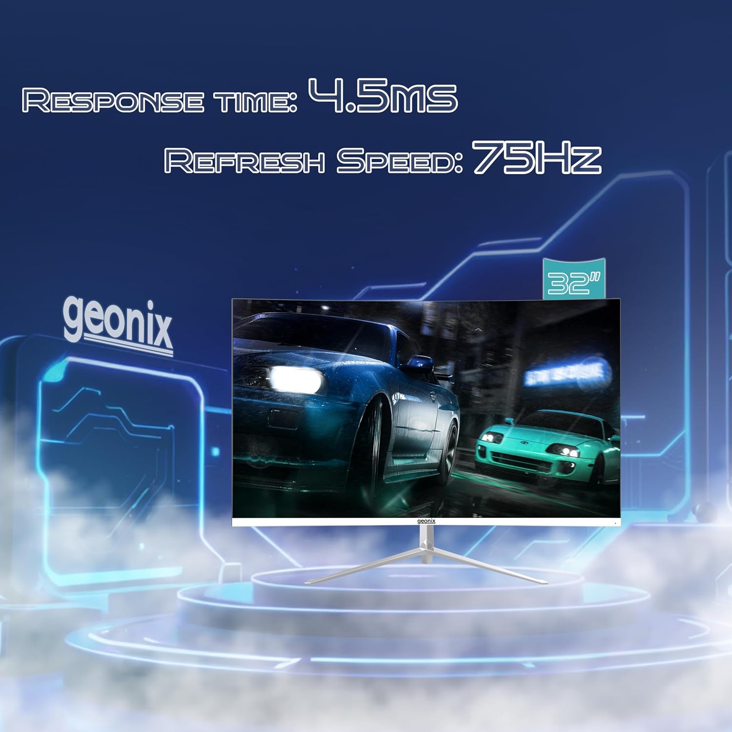 Geonix Argon 32" 75Hz 1080p Full HD LED Panel Curved Monitor with Dual Speakers - White