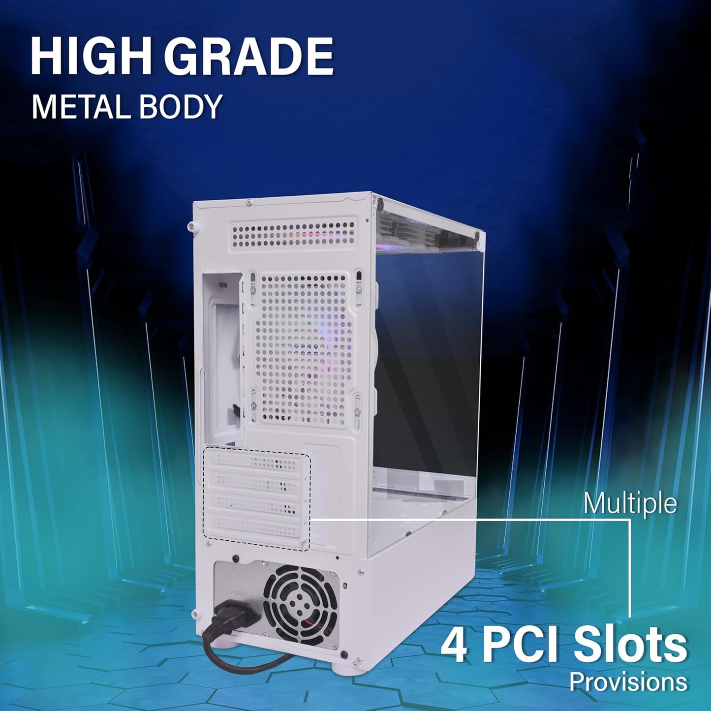 • Design and Build: Features a durable construction with a clean white finish and a transparent side panel that showcases your internal components and RGB lighting. The efficient cable management system keeps cables organized and out of the airflow path, contributing to a cleaner and more efficient build.