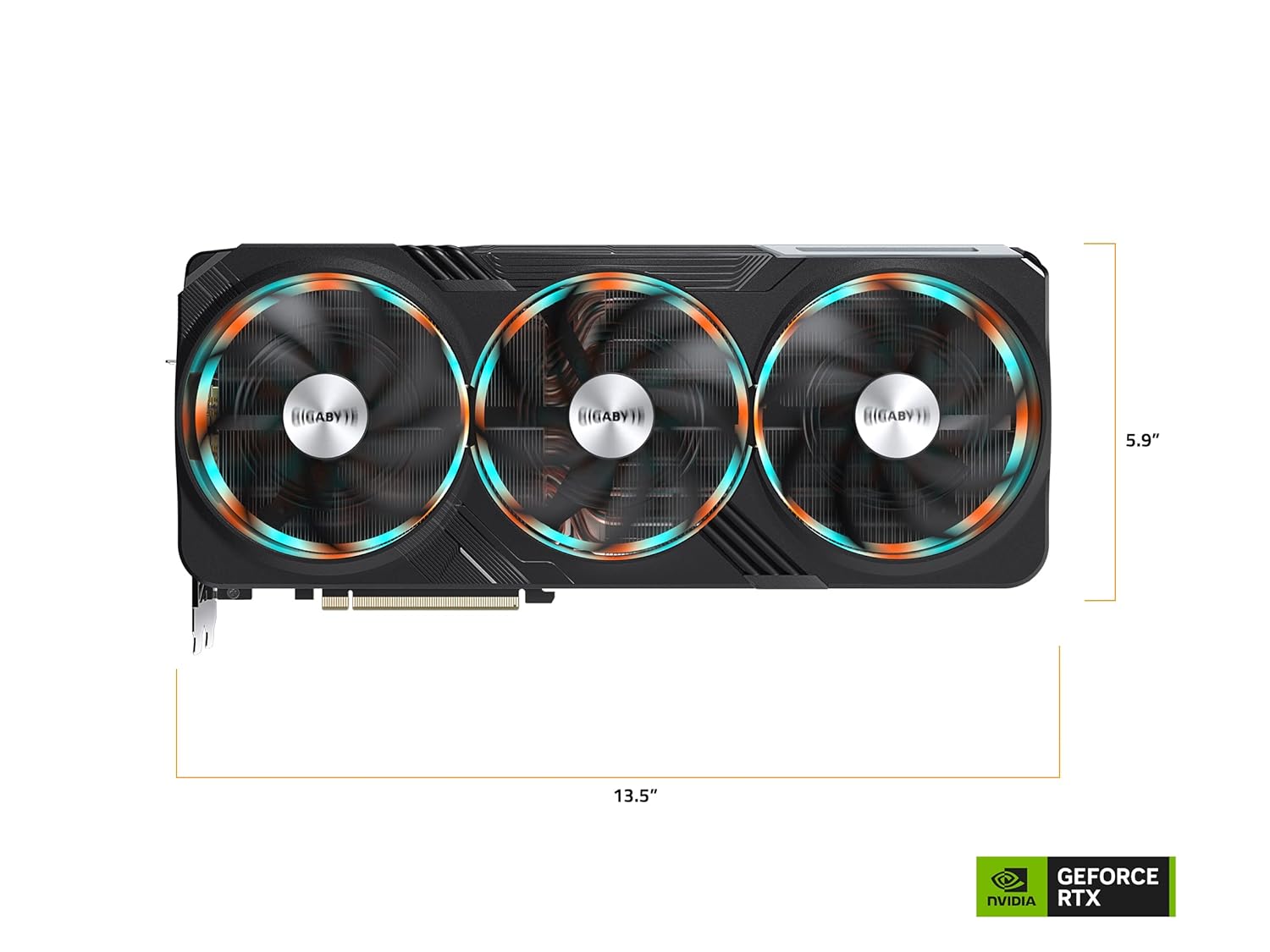 The WINDFORCE cooling system features three 110mm unique blade fans, alternate spinning, 11 composite copper heat pipes, a large vapor chamber directly touches the GPU, 3D active fans and Screen cooling, which together provide high efficiency heat dissipation.