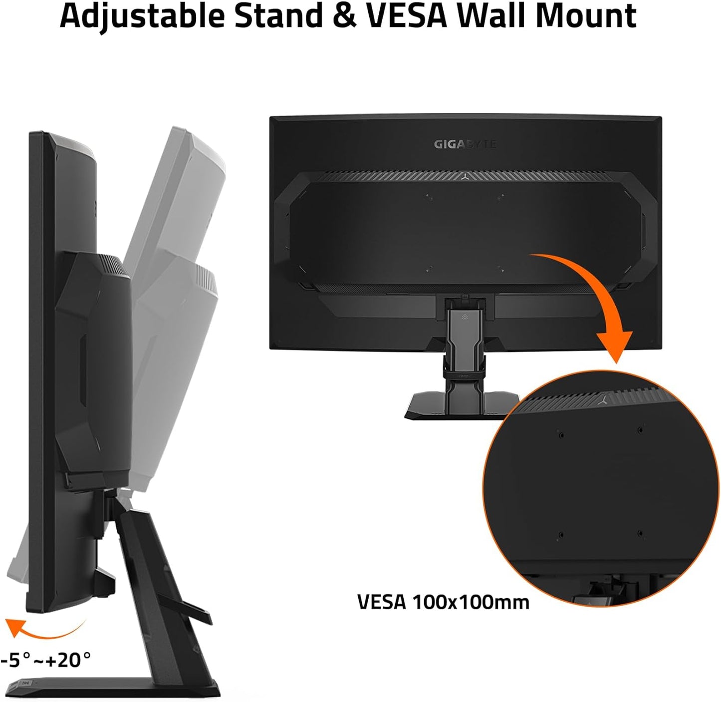 GIGABYTE Gaming monitor features a stand that's designed to offer extensive range of tilt adjustments.
