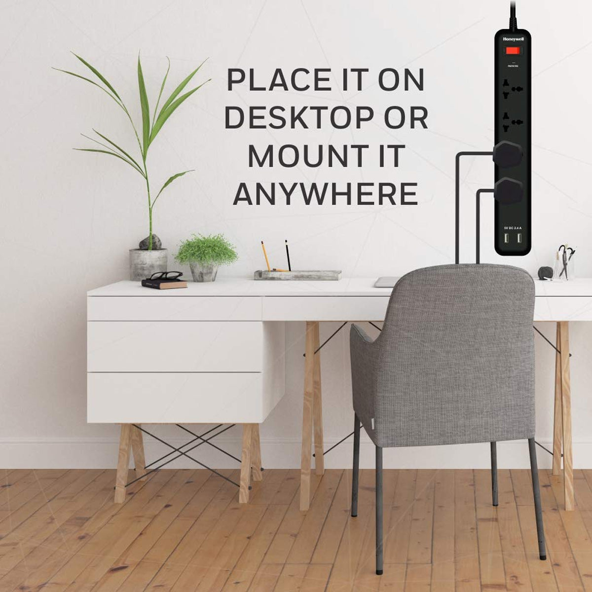 Honeywell 4 Out with 2 USB Surge Protector with Master switch-Value Series has been designed for home and office use. This device allows you to connect 4 different devices with 2 USB simultaneously to one single power source. The product also acts as a surge protector thus preventing damage to the connected equipment during voltage fluctuations.