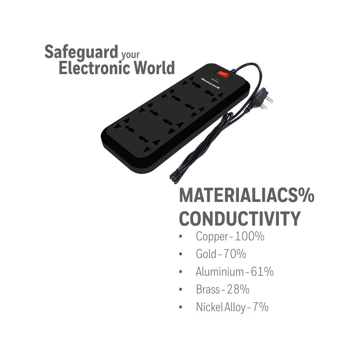 Honeywell 8 Out Surge Protector with Master switch-Value Series has been designed for home and office use. This device allows you to connect 8 different devices simultaneously to one single power source. The product also acts as a surge protector thus preventing damage to the connected equipment during voltage fluctuations.