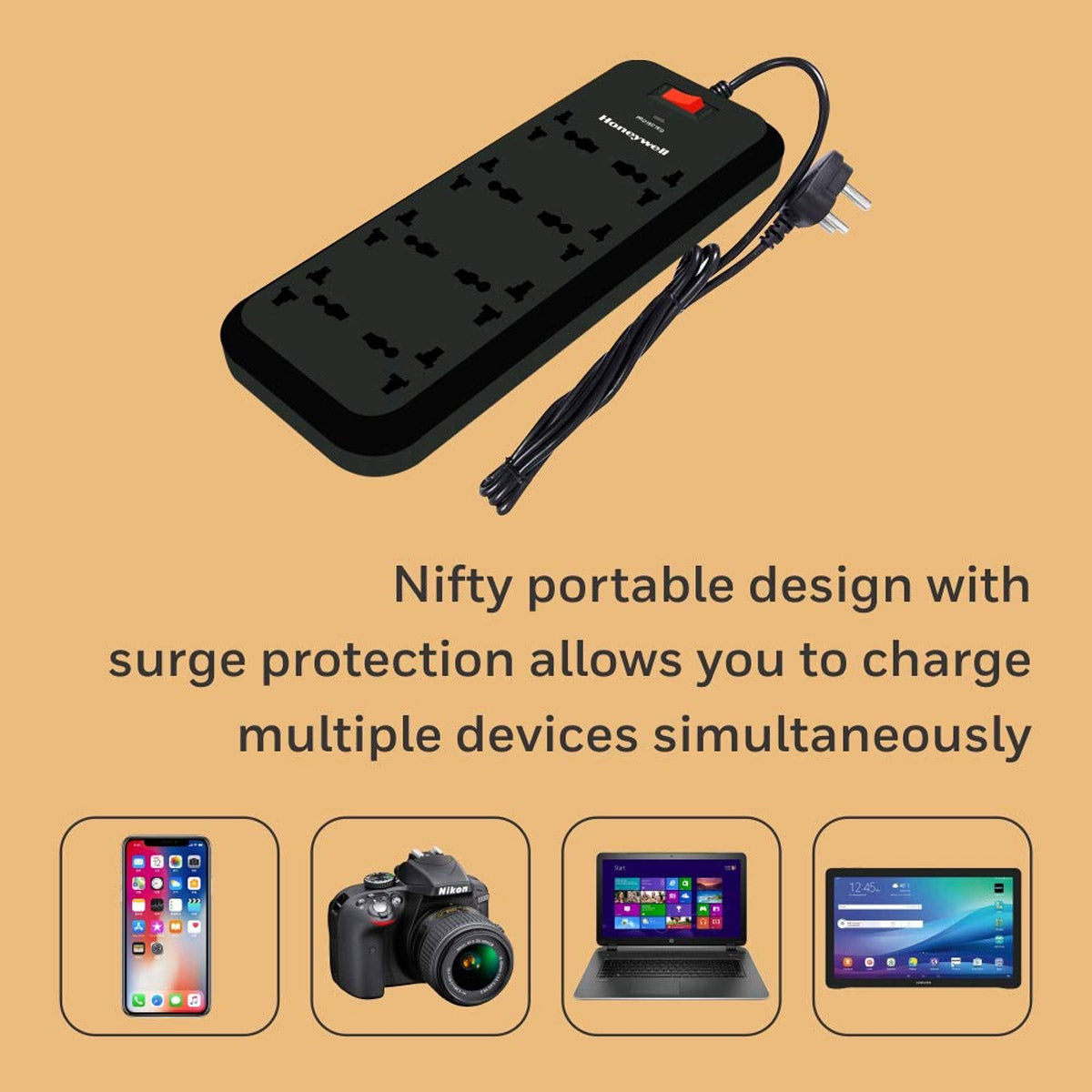 - Honeywell HC000010 Surge protector extension allows you to connect 8 different devices simultaneously to one single power source. The product also acts as a surge protector thus preventing damage to the connected equipment during voltage fluctuations.