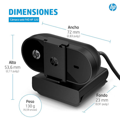 HP 320 FHD Webcam - USB-A Computer Camera with Mic & Privacy Cover - for Desktop, Laptop, & Chromebook