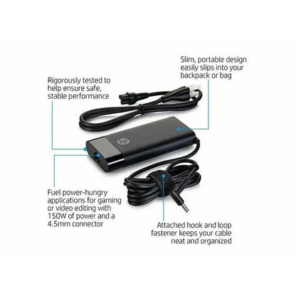 HP Original OEM 150W 19.5V 7.7A 4.5mm Blue Pin Oval Slim AC Adapter for HP Laptops - Black