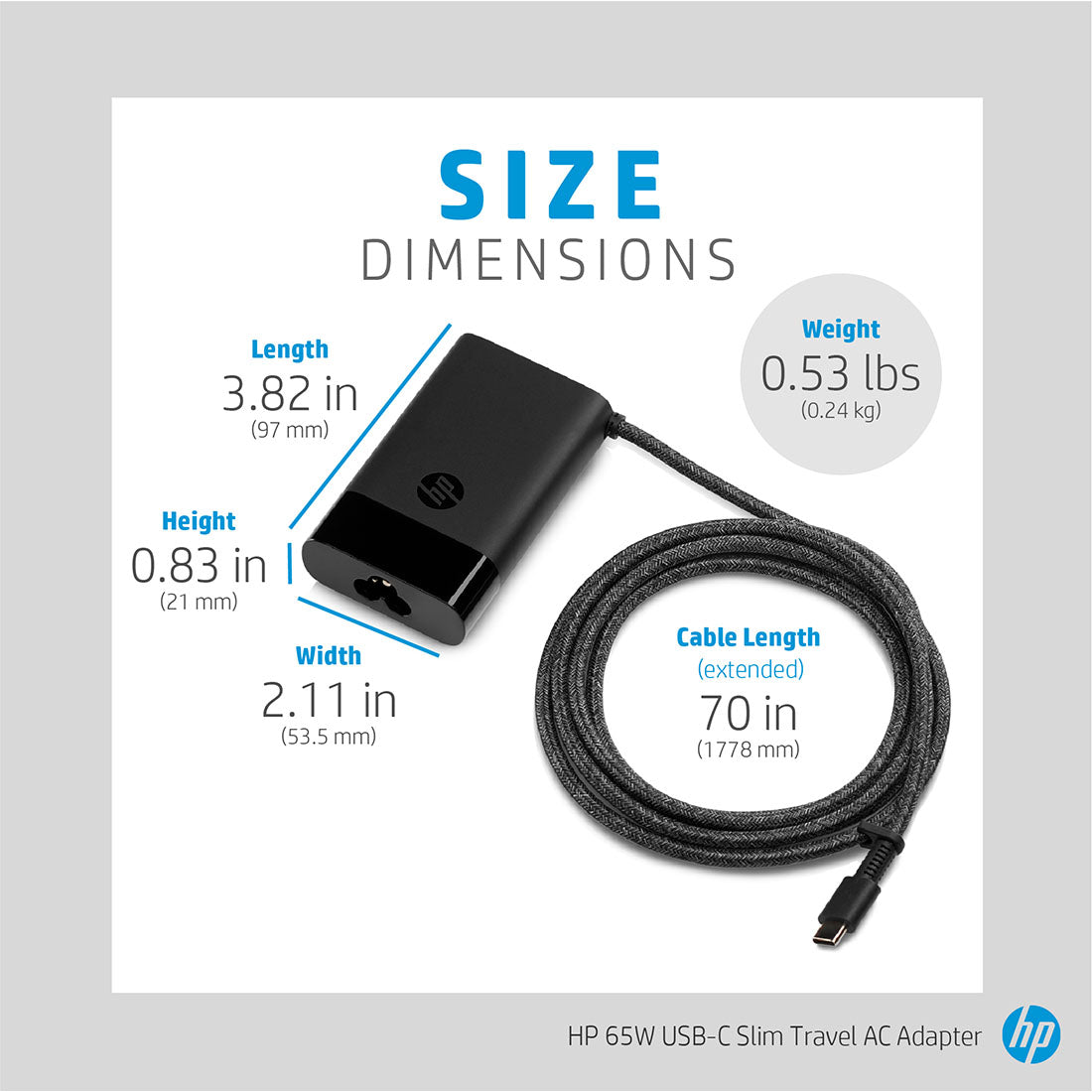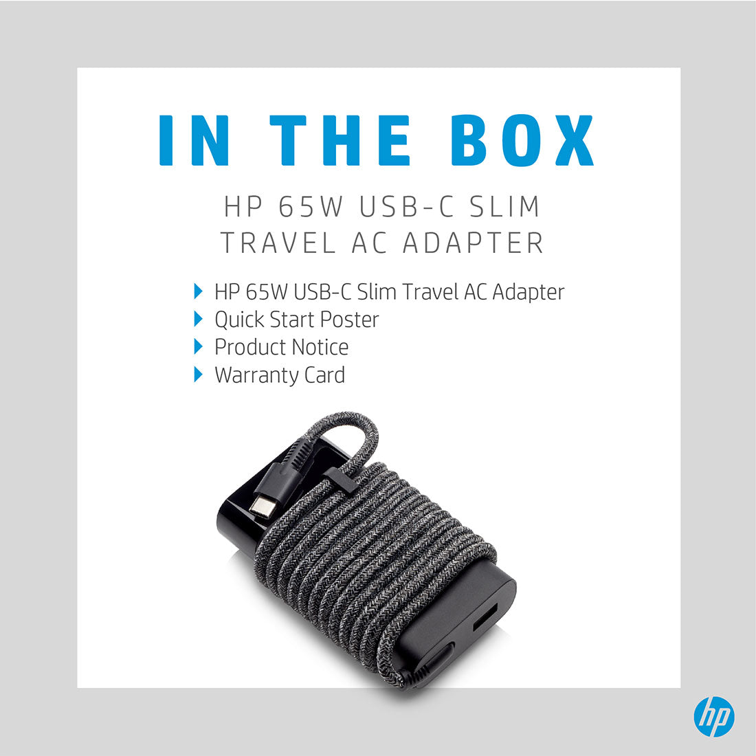HP 65W USB Type-C Slim Travel Power Adapter Charger