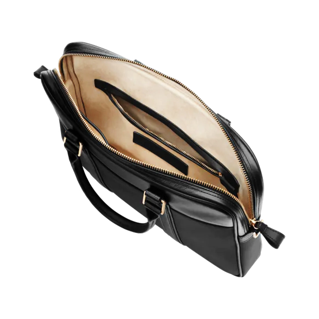 Elegant split-leather material and nylon twill surrounds your laptop with a luxurious style. Fits up to 14-inch diagonal laptops.