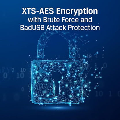 XTS-AES Hardware Encryption: Provides robust data protection with XTS-AES encryption, safeguarding against BadUSB and Brute Force attacks.