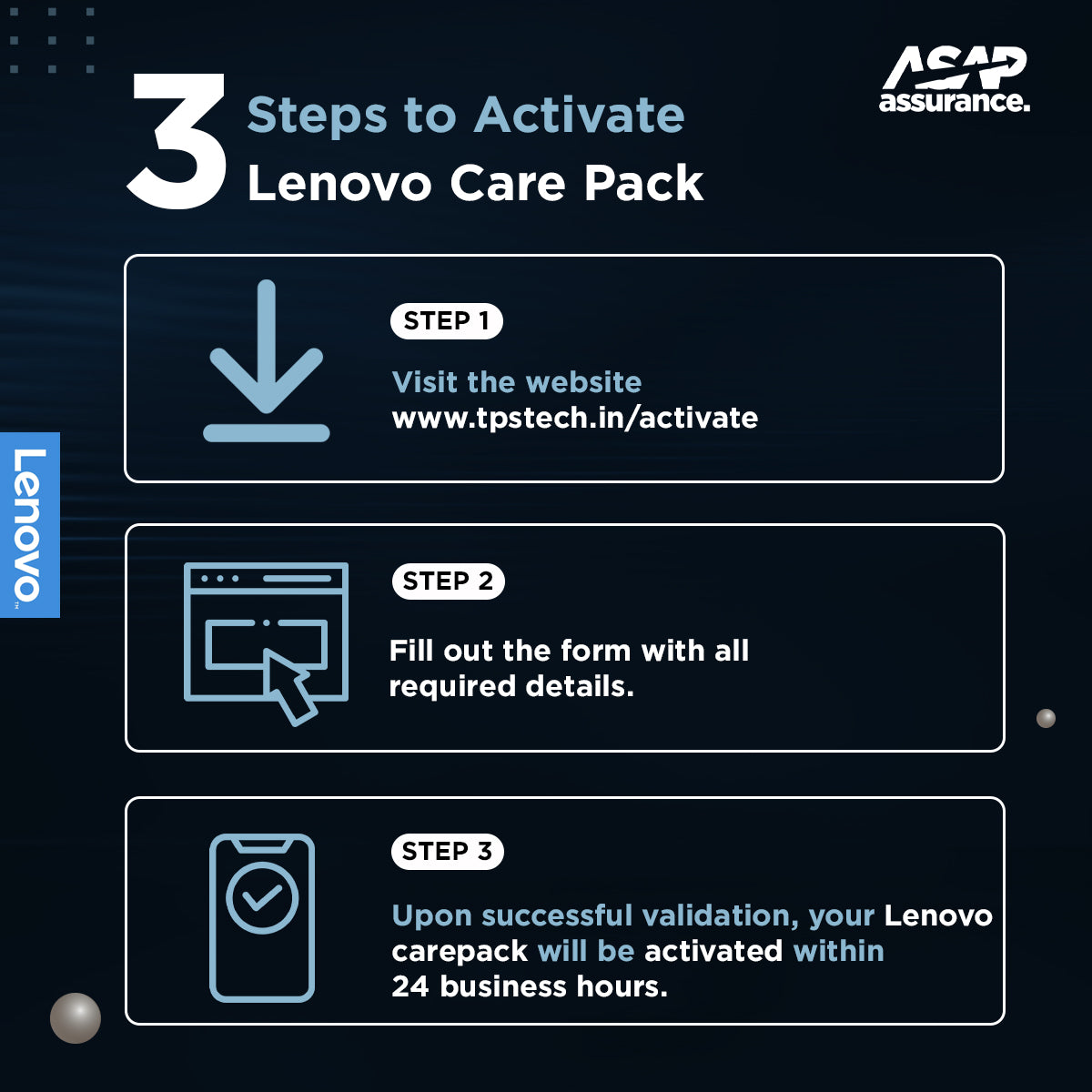 - Email Delivery Steps: After getting the activation code on your registered email id, Go to tpstech.in/activate and fill in the required details in the web form and submit the form to initiate activation. The warranty will be activated within 3-4 business days. After activation, the warranty extension will reflect on pcsupport.lenovo.com/in/en/warrantylookup#/ within 48 hours.