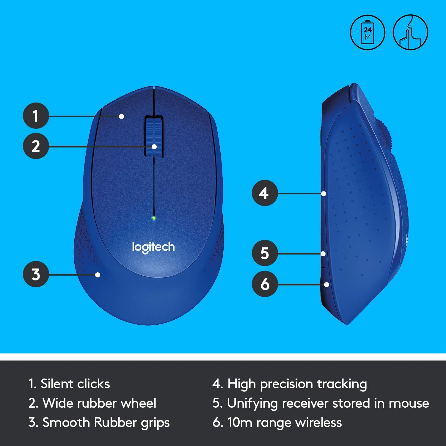 Logitech M331 Silent Plus Wireless Optical Mouse Blue with 1000DPI and 2.4 GHz Technology