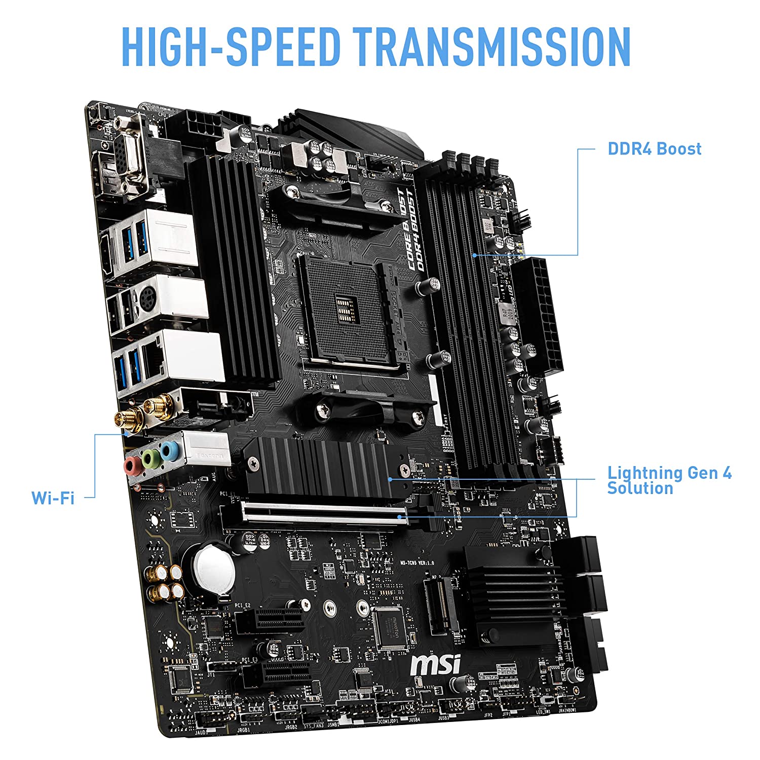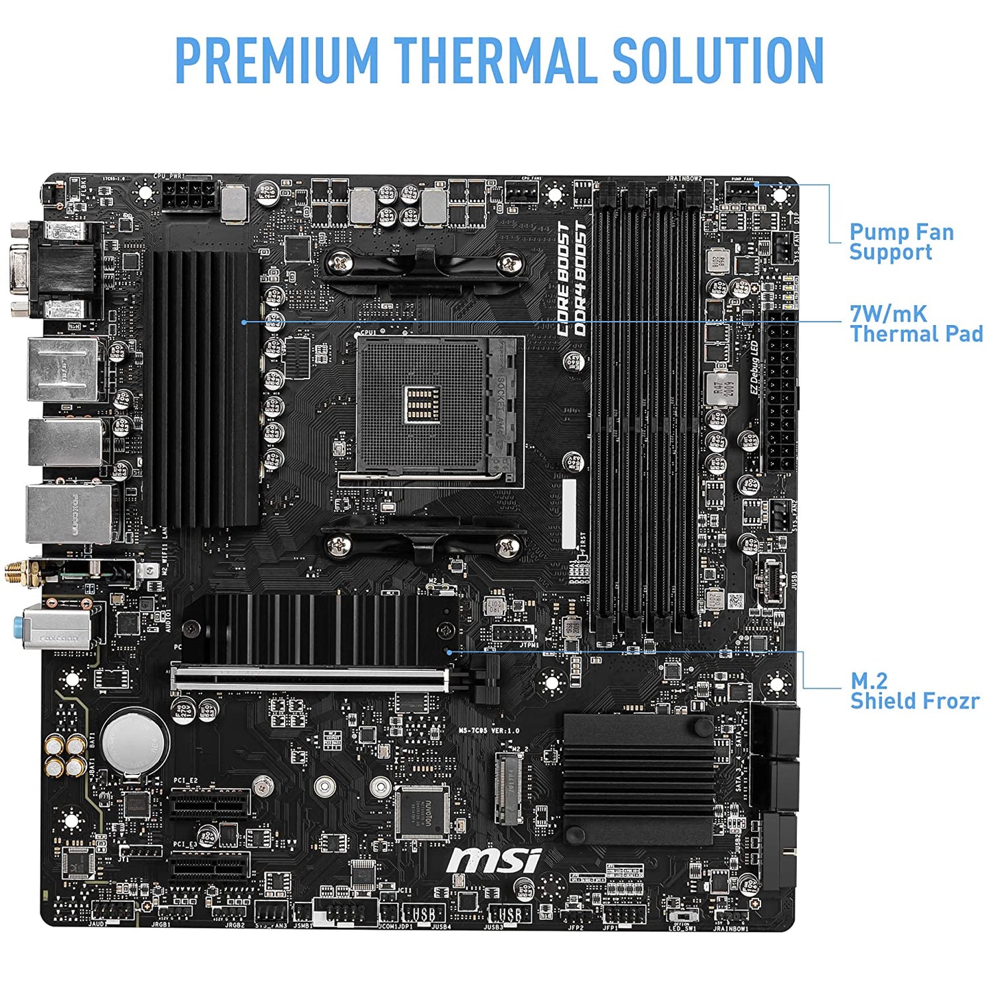 MSI B550M Pro-VDH WiFi motherboard supports Supports AM4 socket 3rd Gen AMD Ryzen processors and future AMD Ryzen processors with BIOS update. Combining MSI Core Boost, you can release maximum performance no matter what CPU you use. MSI PRO series motherboards are designed to satisfy any professional workflow.