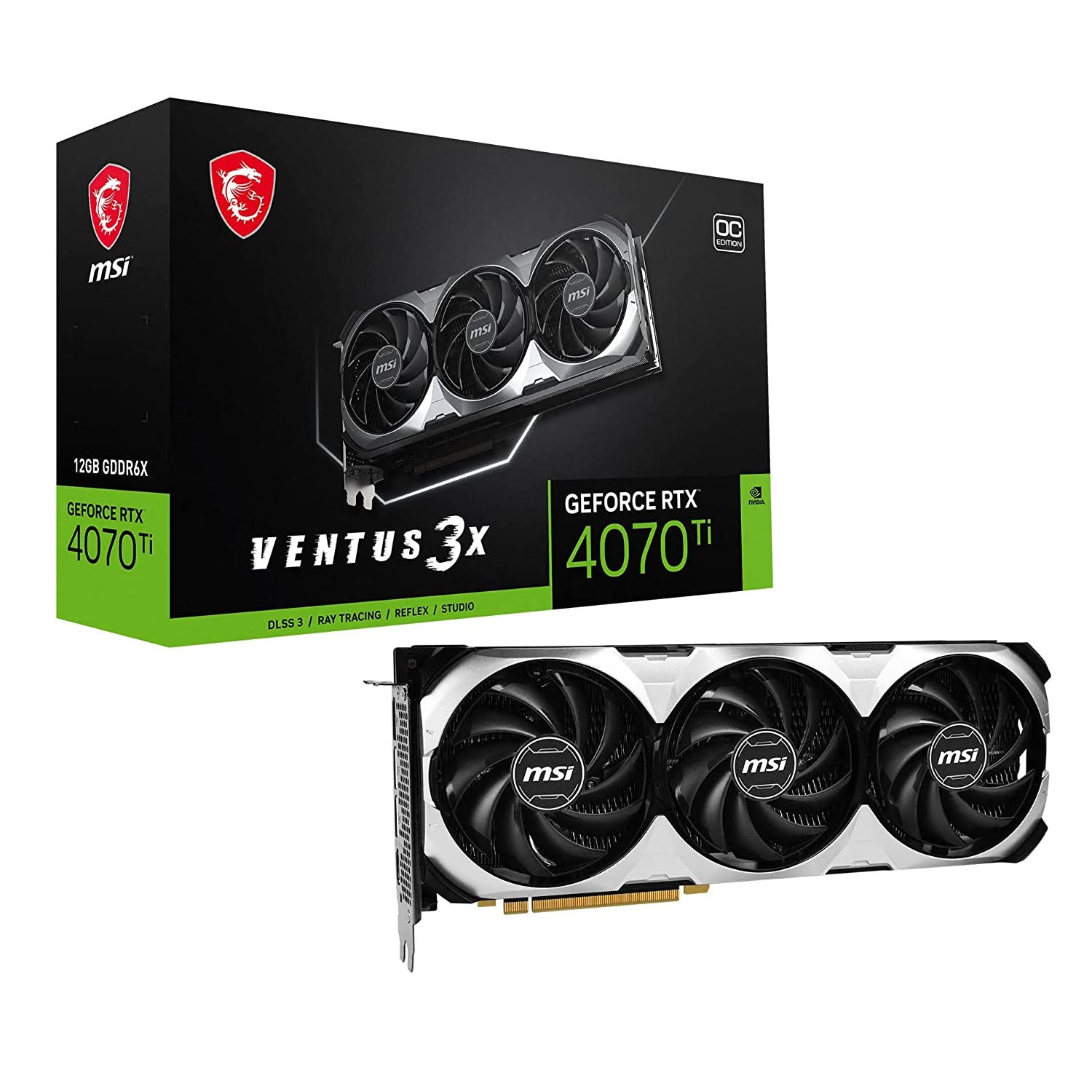 - Powered by NVIDIA Ampere architecture RTX 4070 Ti Ventus 3X is equipped with 7680 CUDA cores and 12GB GDRR6X memory.