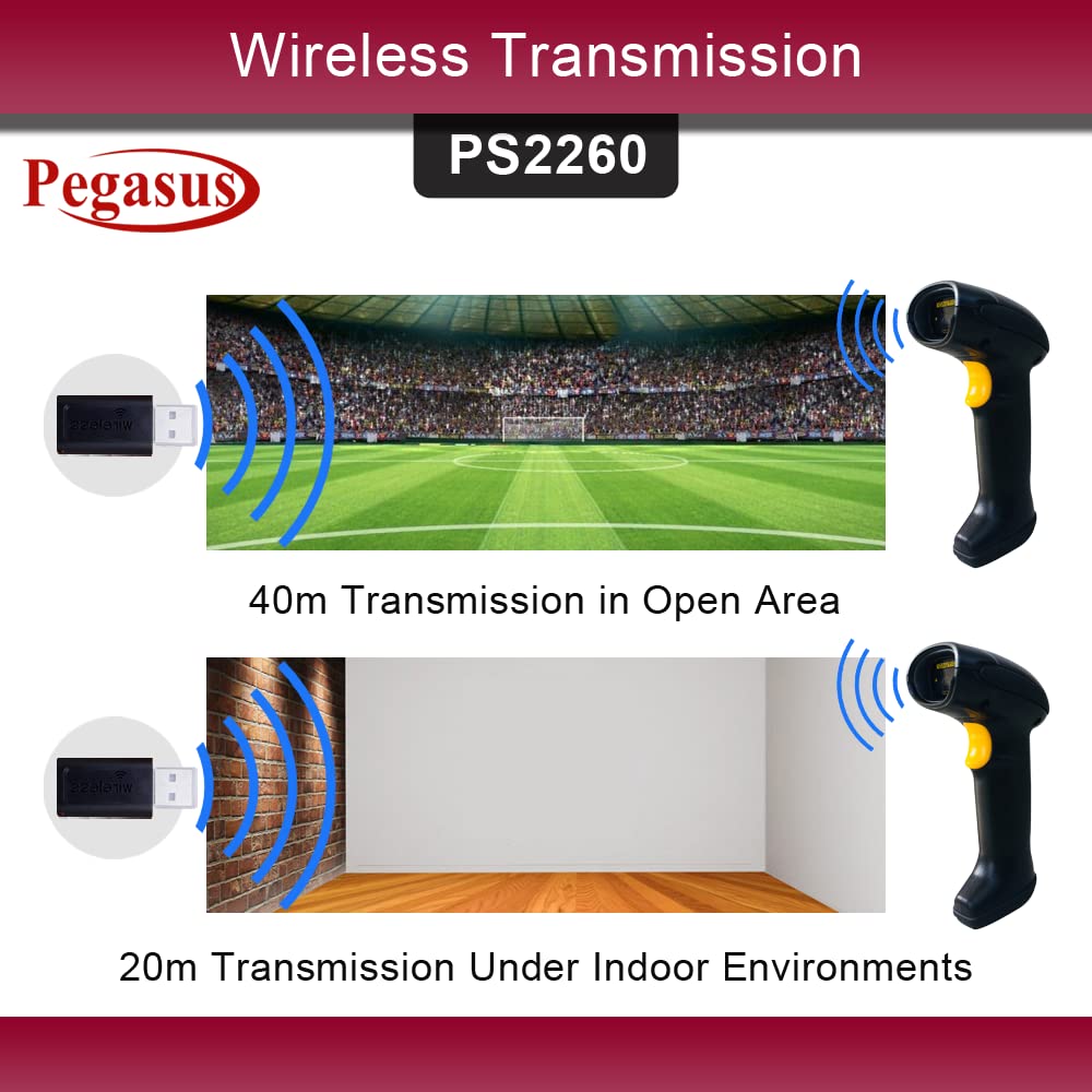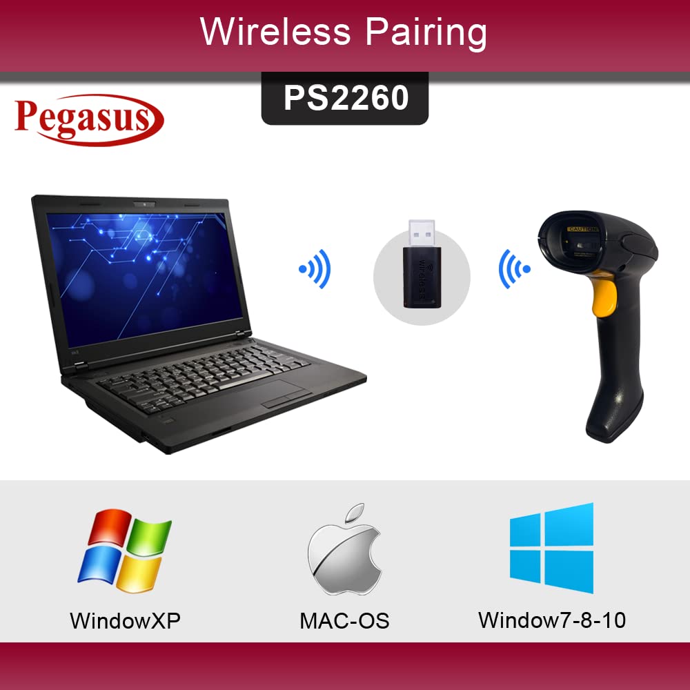 Pegasus PS2260 1D USB Wireless Laser Handheld Barcode Scanner with Bluetooth Dongle
