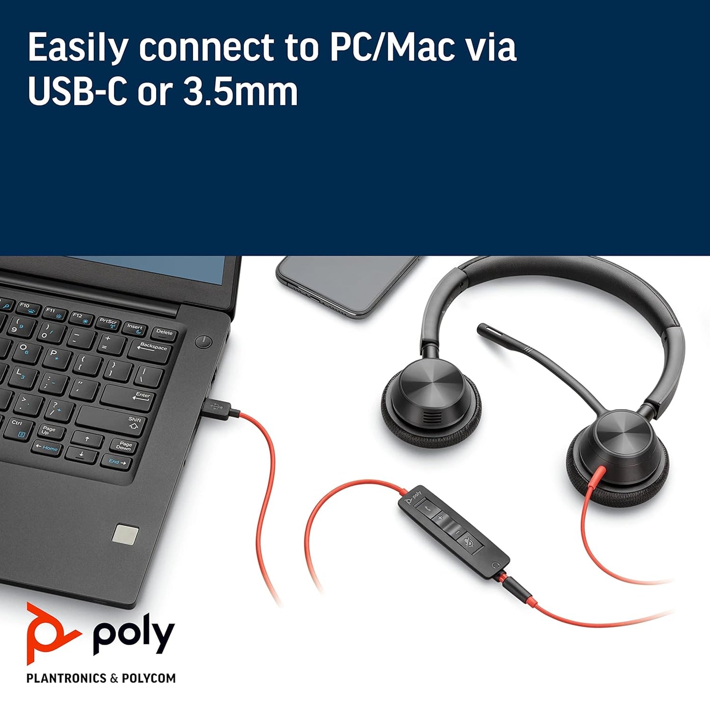 POLY Blackwire 3225 USB-C Wired Headphone with Noise Cancelling Boom Mic - Black