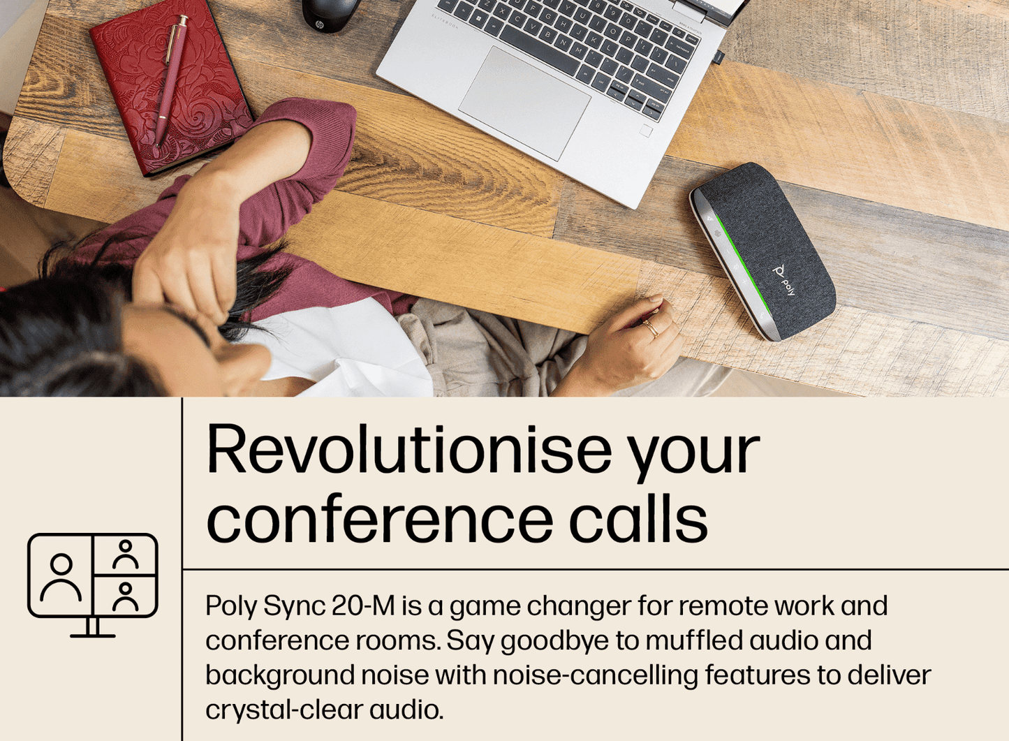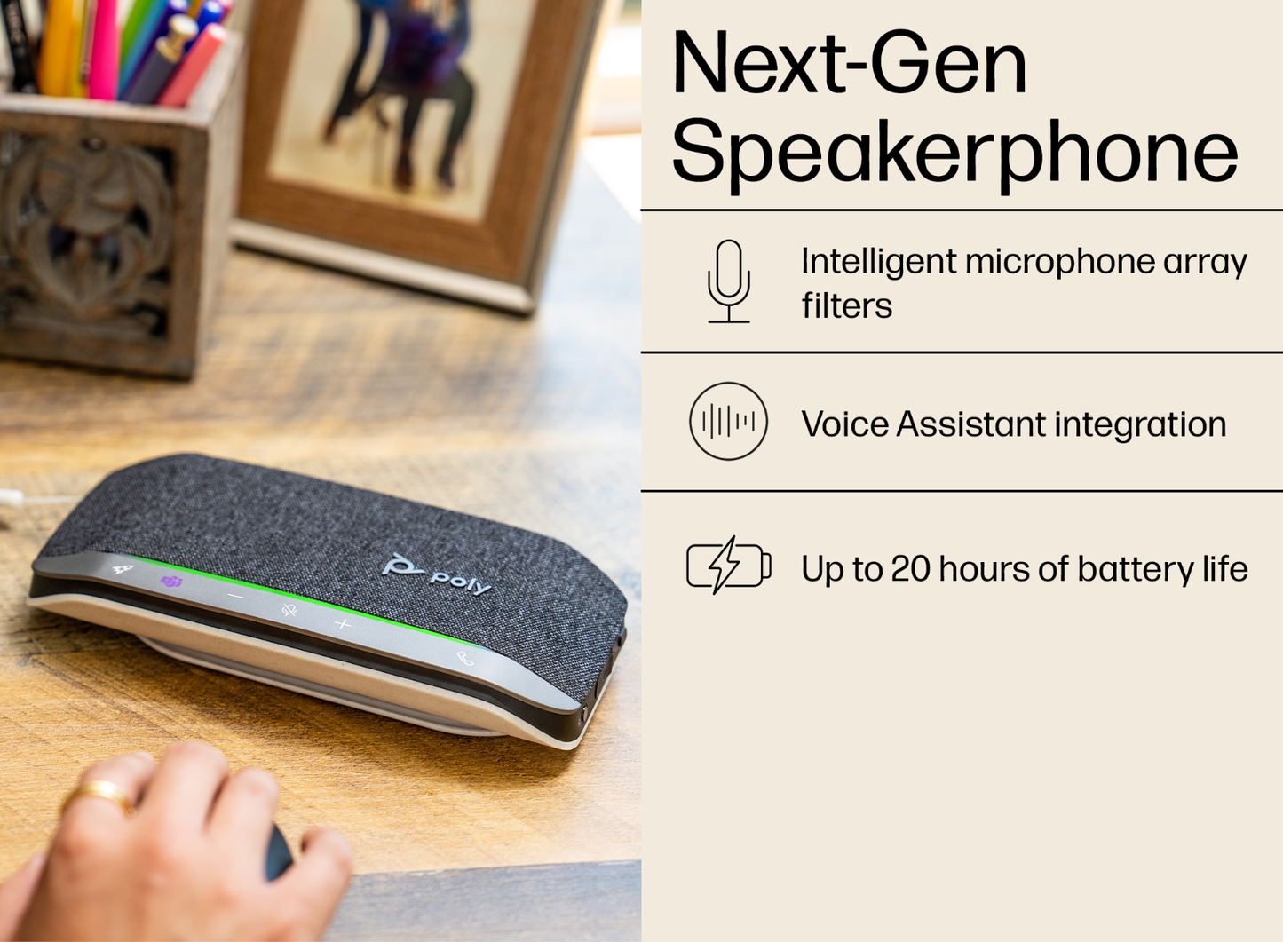 Exceptional Audio Clarity: Equipped with a three-microphone array, the Poly Sync 20+ captures your voice with precision while minimizing background noise. This ensures crystal-clear communication, making your conversations sound natural and uninterrupted.