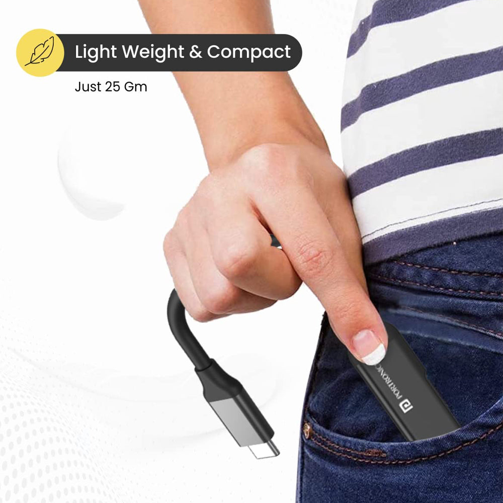 Portronics Type C Hub comes with a dedicated 3.0 USB-A port, gives you high-speed connectivity with up to 5Gbps data transfer speed.