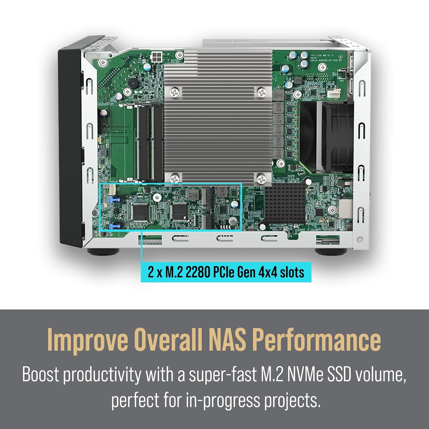 Flexible Storage Options: With 8 drive bays that support both 3.5" and 2.5" drives, along with dual M.2 PCIe Gen4x4 NVMe SSD slots for cache acceleration or SSD storage pools, this NAS offers versatile and extensive storage solutions to meet various needs.