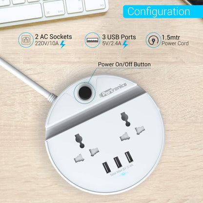 - Portronics Power BUN has a universal usage which is suitable for home & office use where desk space is limited and to avoid clutter. It has ample power ratings of 2500W.