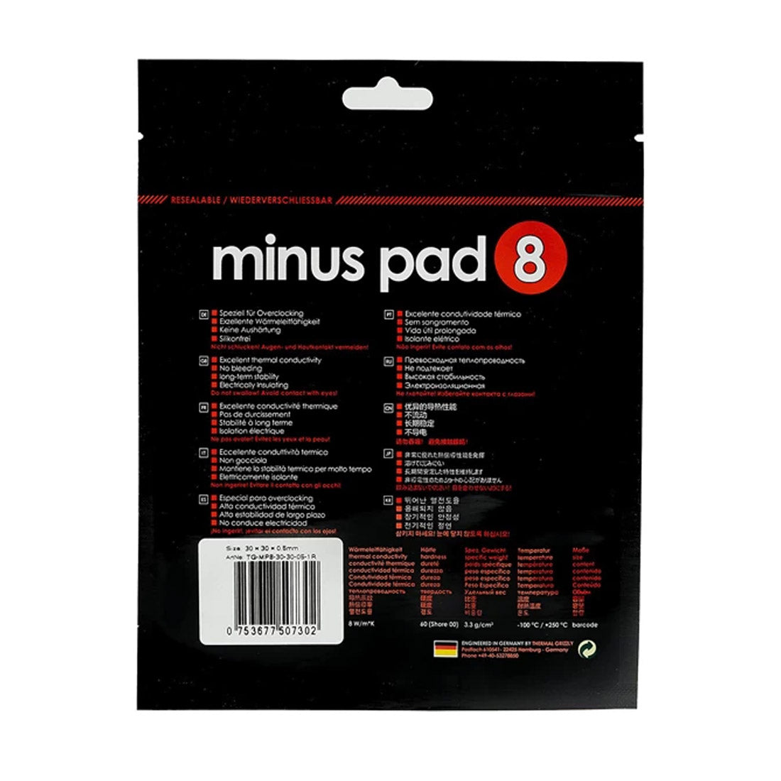 - Thermal Grizzly minus pad series have a very elastic and adaptable surface with very high thermal conductivity. Even the smallest component differences can thus be compensated very well.