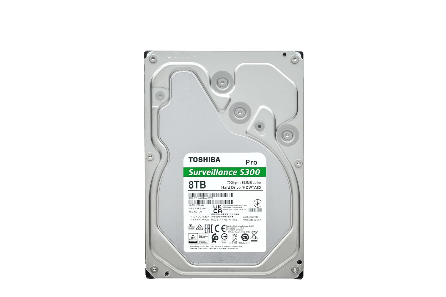 Elevate your security solutions with the Toshiba 3.5-inch S300 Pro Surveillance Hard Drive. Engineered for relentless reliability, it offers up to 10 TB storage capacity to capture and retain every critical moment for long periods with real-time object identification and face recognition. Accommodating up to 64 video cameras, itâs ideal for comprehensive surveillance setups. Benefit from high-end drive performance that delivers superior video quality and seamless streaming. Built to the highest quality standards, youâll have peace of mind knowing that your surveillance footage is stored securely.