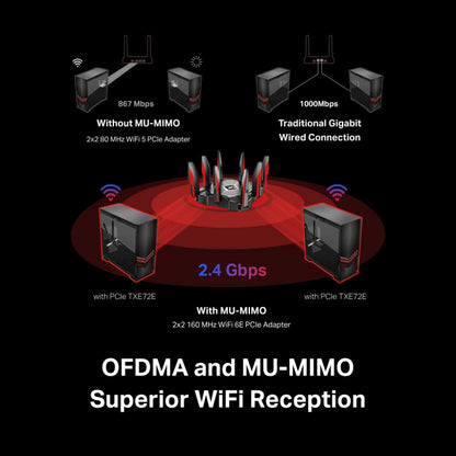 Unparalleled Tri-Band Speed — Boost your overall speeds up to 2402 Mbps (6 GHz) + 2402 Mbps (5 GHz) + 574 Mbps (2.4 GHz)