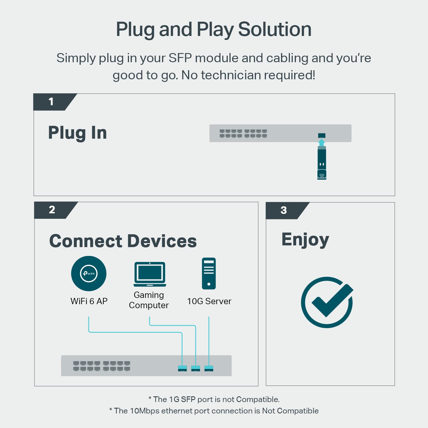 Plug-and-Play Design: The TL-SM5310-T is designed for ease of use with a plug-and-play setup. This means you can simply insert the module into an SFP+ slot to convert it to an RJ45 port without needing any additional configuration or technical expertise. This feature significantly simplifies the installation process and reduces setup time.