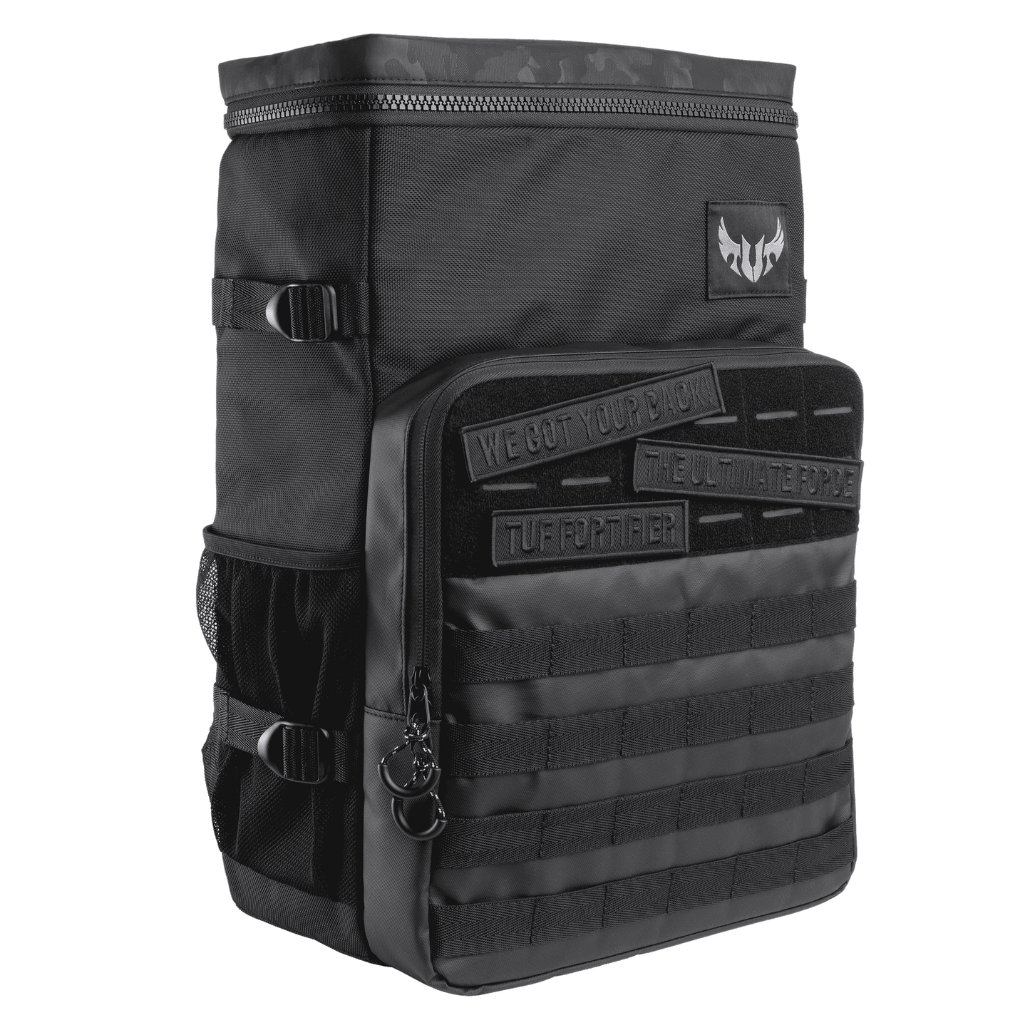 TUF Gaming BP2700 Backpack is inspired by tactical bags, with a side mission of customization so you can storm your way to victory in style. This sturdy kitbag is constructed from 1680D polyester and multiple durable materials to provide reliable water-repellence and a scratch-resistant finish. It also has a hook-and-loop panel that you can style with personal mottos and patches that show your character.