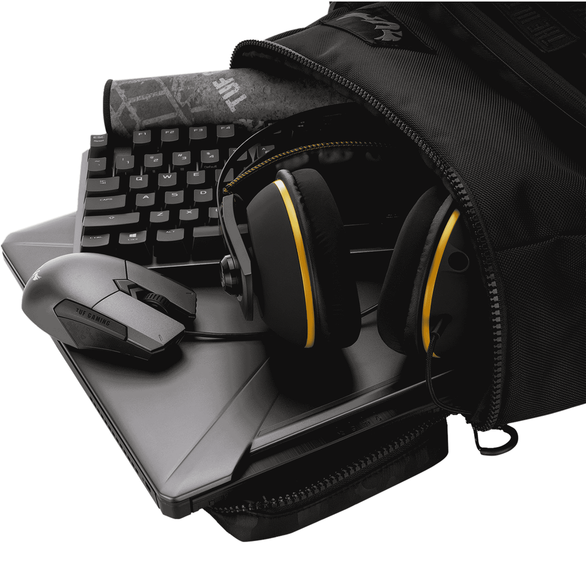 TUF Gaming BP2700 is roomy enough for everything you need to pack. The spacious interior is organized into multiple pockets to accommodate your mouse, keyboard and headset – with a padded compartment to keep your laptop secure and free from scratches.